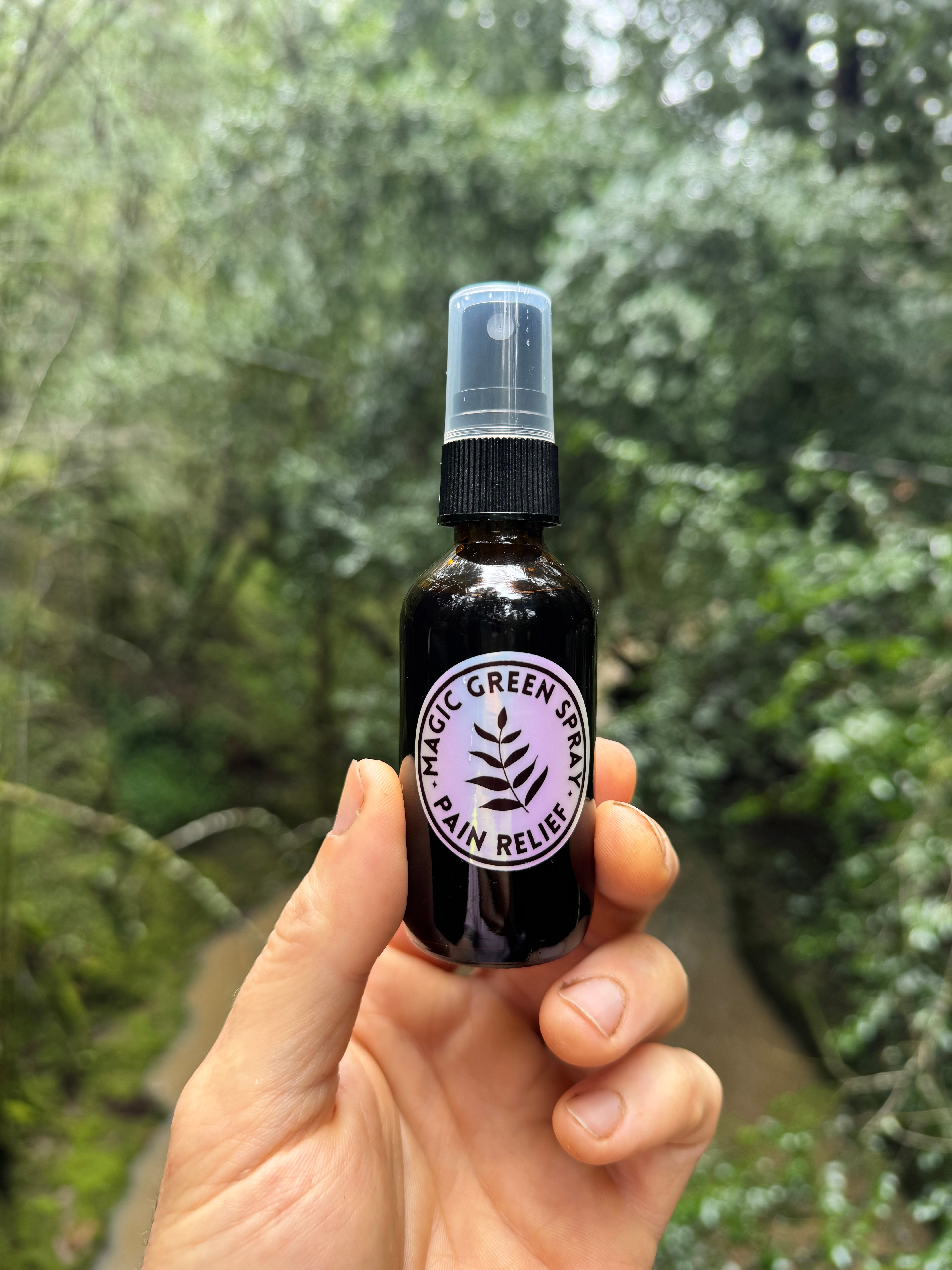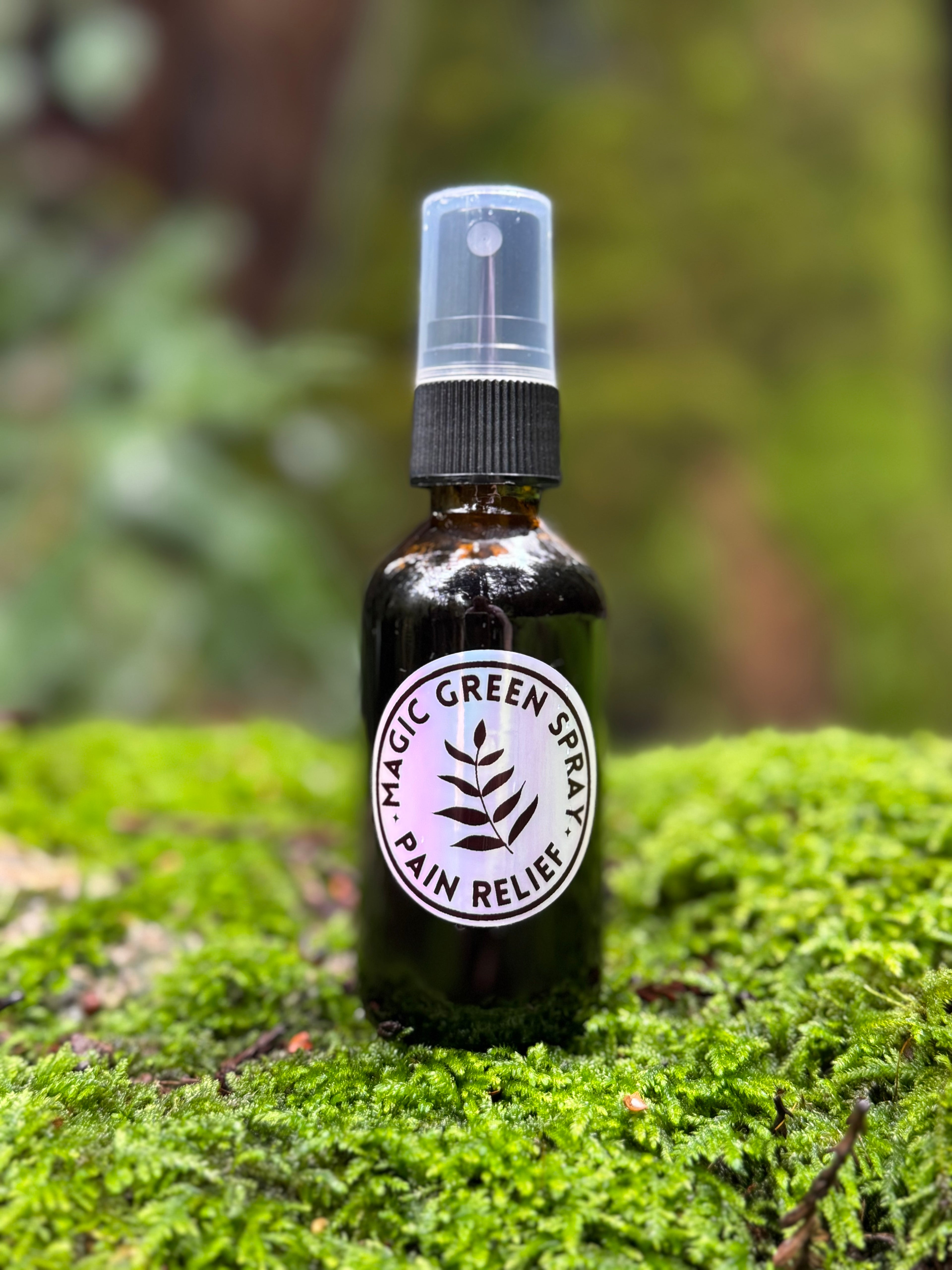 Magic Green Spray™ is an organic pain relief liniment with over twenty naturally occurring monoterpenoids, flavonoids, sesquiterpenes, alkaloids, lipids, and other powerful anti-inflammatory and pain-relieving compounds